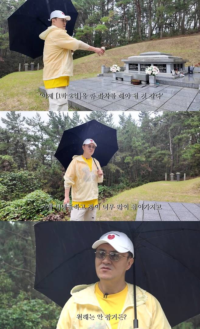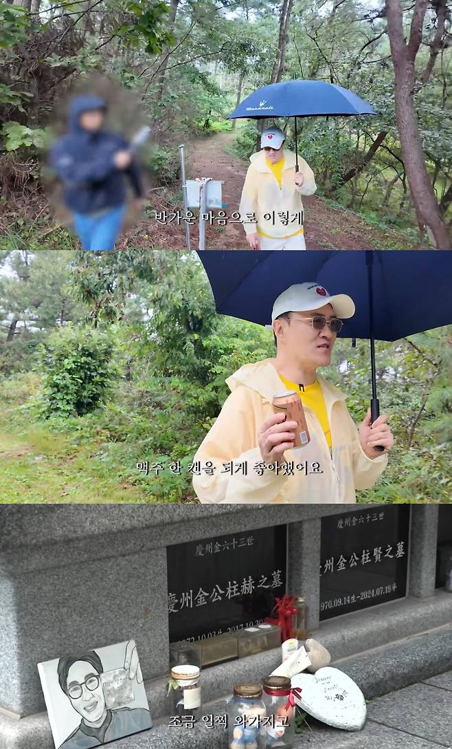 데프콘은 "명절이 지나서 정리가 깔끔하게 잘 되어 있다. 계속 그대로 있다. 기일에 오면 많은 분들이 오셔서 그리워하신다"며 "올 때마다 깔끔함을 유지하고 계신다. 관리를 신경써서 해주시는 거다"라고 평소 고 김주혁의 묘소에 대해 이야기했다.