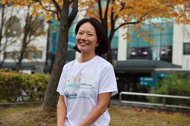 진료실에서 모니터를 사이에 두고 마주 봤던 사람들이 이제는 트랙 위에서 한곳을 바라보며 달린다. 크루장은 암 전문의, 크루원은 암 환자와 그들의 가족·친구들이다. 지난 1일 창단된 서울아산병원 '마이 호프(MY HOPE)' 크루 이야기다. 크루를 기획한 김희정 서울아산병원 유방외과 교수는 "젊은 암 환자들이 달리기를 통해 마음의 짐을 훌훌 날려버리길 소망해서 창단했다"고 말했다.