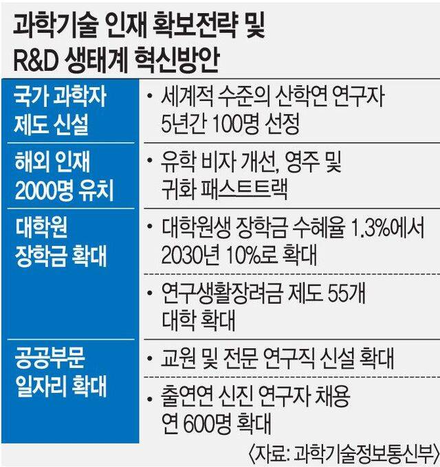 이번 방안은 과학기술 분야에 충분한 지원을 통해 과학 인재가 모여들 수 있는 환경을 만들고, 이를 통해 인재를 키워낼 여건을 마련하는 '선순환 생태계'를 구축하는 것이 목표다.
