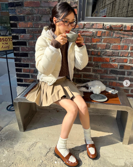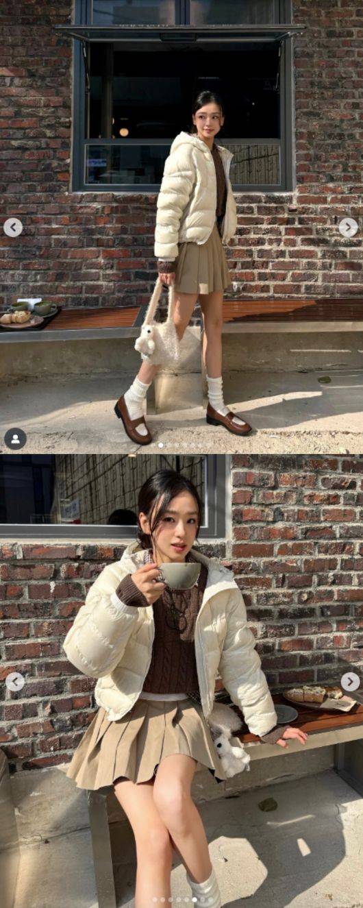 공개된 사진 속 손연재는 크림색 패딩에 브라운 니트, 플리츠 스커트를 매치해 발랄하면서도 포근한 가을 패션을 선보였다. 흰 양말과 로퍼, 인형 가방으로 포인트를 준 그는 카페 앞 벤치에 앉아 커피를 마시며 화보 같은 자태를 선보였다.