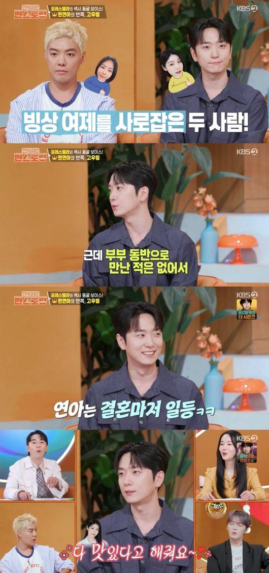 알고보니, 두 사람은 얼음 위 최고의 아내들과 결혼한 공통점이 있다. 고우림은 이상화와 김연아가 가끔 만난다고 했고, 강남은 “연락도 하고 무슨 일 있으면 상담도 하고 약간 잘 맞는 것 같다”라고 전했다.