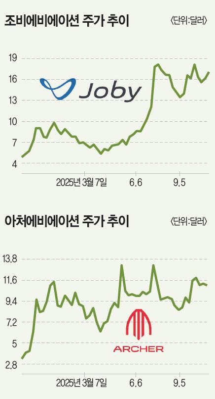 반면 아처는 ‘자본 효율화’에 집중한다. 일종의 분업화다. 아처는 항공기 설계와 개발에 집중한다. 생산은 자동차 제조 업체인 스텔란티스에 맡긴다. 양사 협업은 2023년 시작됐다. 스텔란티스는 ‘독점 생산권’을 확보하고 아처에 1억1000만달러(약 1500억원)의 자금을 투입했다. 지난해 7월에도 5500만달러(약 780억원)를 추가 투자했다. 덕분에 아처는 상대적으로 재무 건전성이 뛰어난 편이다.