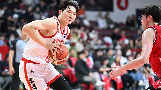 정관장은 부상에서 돌아온 전성현이 경기 시작 직후 3점포를 시도했으나 무위에 그쳤습니다.