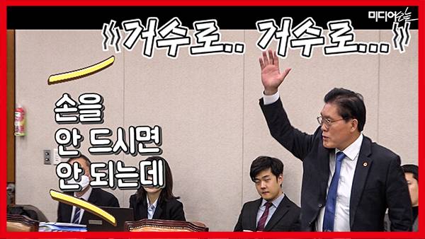 이 과정에서 “반대하는 위원님은 손을 들어주시기 바란다”는 추미애 위원장 진행에 송석준 의원은 자리에서 벌떡 일어나 “손이 아니라 아주 격하게, 이건 위헌적 법률이기 때문에 우리 찬성 못 한다”고 반발했다. 추미애 위원장이 “아까 제가 거수로 말씀드렸기 때문에 손을 안 드시면 안 되는데”라고 한마디 하자, “거수로...거수로...”라고 읊조리던 송석준 의원은 반대 표시로 손을 들고, 다시 자리에 앉았다. 여당 쪽에선 송 의원 모습에 웃음이 터져 나왔다. 영상엔 표결에 온몸으로 반대하며 일어선 송석준 의원이, 추미애 위원장 한마디에 번쩍 손을 들고 앉는 장면이 생생하게 담겼다.