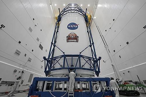 In this image provided by Blue Origin, NASA's identical Mars orbiters, named Escapade (Escape and Plasma Acceleration and Dynamics Explorers), are secured in Blue Origin’s New Glenn rocket's 7-meter fairing, Oct. 31, 2025, in Cape Canaveral, Fla, (Stephanie Plucinsky/Blue Origin via AP) AP PROVIDES ACCESS TO THIS THIRD PARTY PHOTO SOLELY TO ILLUSTRATE NEWS REPORTING OR COMMENTARY ON FACTS DEPICTED IN IMAGE; MUST BE USED WITHIN 14 DAYS FROM TRANSMISSION; NO ARCHIVING; NO LICENSING; MANDATORY CREDIT