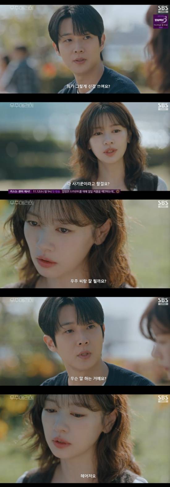 지난 7일 방송된 SBS 금토드라마 '우주메리미' 9회에서는 유메리(정소민 분)를 향한 더 깊어진 마음을 고백하는 김우주(최우식)의 모습이 그려졌다.