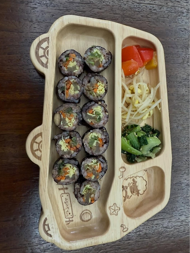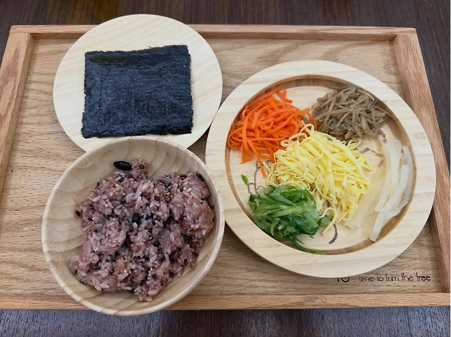 정갈한 밥과 가지런히 채 썬 당근, 달걀지단, 고사리, 오이까지. 소박하지만 세심하게 담긴 한 끼에는 가족을 향한 마음이 고스란히 배어 있었다.