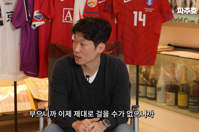 이 자리에서 박지성은 채널을 운영하는 진행자 박주호가 무릎 상태를 묻자 "그때 (아이콘 매치) 경기하고 10일 정도 가만히 앉아만 있다가 그 이후로 이제 다시 나아졌다"고 털어놨다.