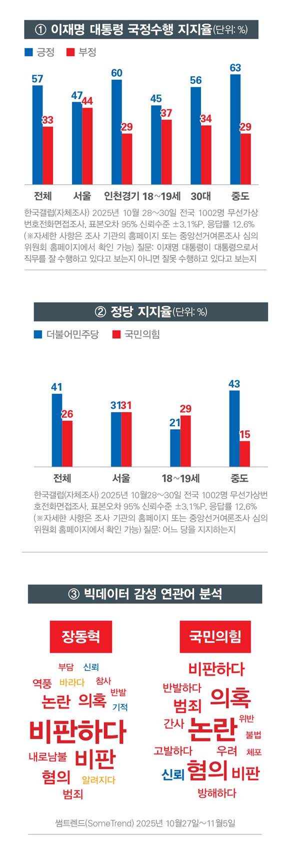 30% 그친 국힘 호감도, 32% 혁신당에도 뒤져