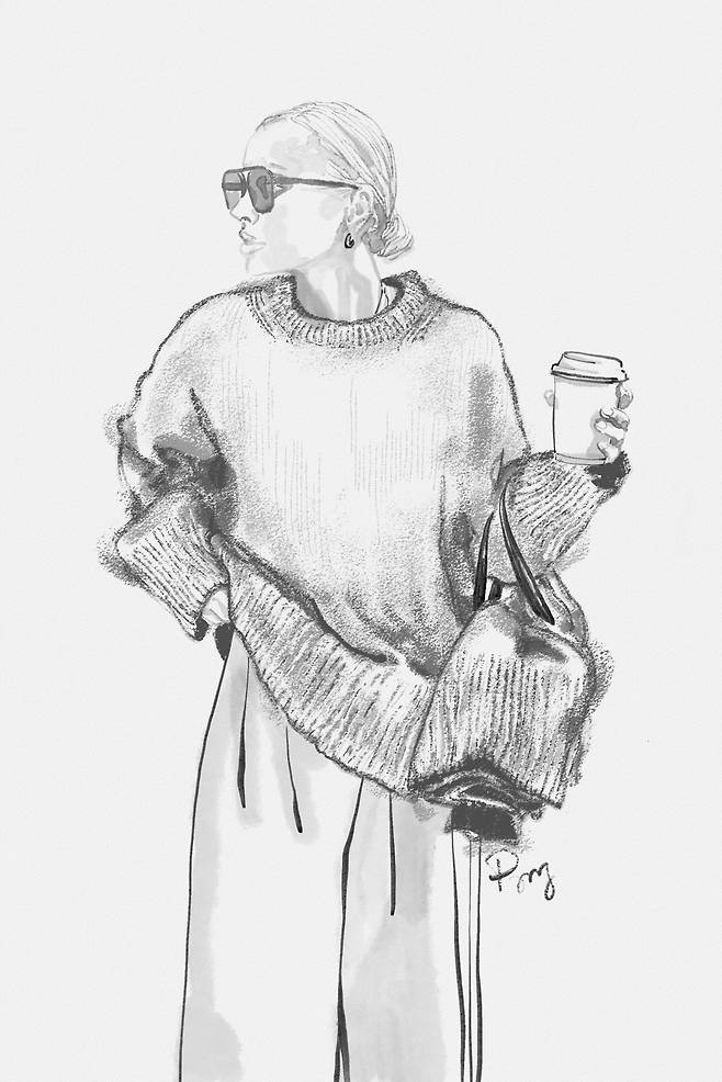 풀오버는 구조가 단순하기 때문에 작은 요소 하나에도 분위기가 크게 달라진다. 최근의 흐름은 오버사이즈다. 특히 방모 캐시미어로 만든 루즈한 풀오버가 그 경향을 잘 보여준다. 편안하면서도 멋스럽고, 넉넉하게 떨어지는 어깨선과 손등을 덮는 긴 소매는 일상적인 차림에도 여유와 감각을 더해 준다. 반대로 소모 캐시미어 풀오버는 몸에 맞게 입는 것이 좋다. 얇고 단정한 라인이 특징이어서 재킷 안에 받쳐 입거나 단독으로 입어도 깔끔하다. 기장 역시 중요한 요소다. 골반 위에서 끊기듯 떨어지는 짧은 길이는 경쾌하고 활동적인 인상을, 허벅지까지 내려오는 긴 기장은 차분하고 여유로운 분위기를 만든다. 디테일이 단순한 풀오버일수록 핏과 기장의 선택이 곧 스타일을 완성한다.