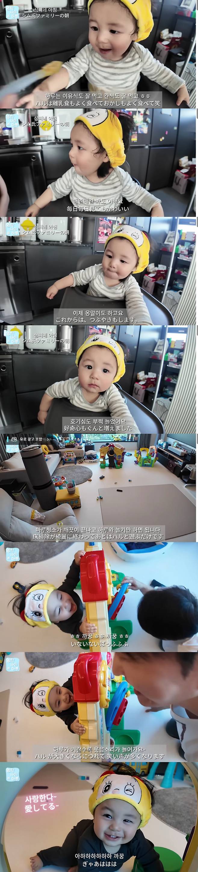 이후 심형탁은 식사를 마친 뒤 집안 정리에 나서며 '아빠 모드'를 이어갔다. 그는 장난감을 꺼내 아들 하루와 놀아주며 "아이고, 너무 예뻐 우리 아들"이라며 다정한 눈빛을 보였다. 하루는 꺄르륵 웃으며 아빠와의 시간을 즐겼고, 이를 바라본 사야는 "하루가 하루하루 웃음소리가 늘어간다"며 흐뭇한 미소를 지었다.