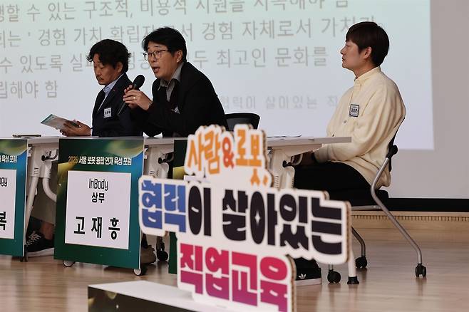 "둘 다 가능한 길을 만들고 있어. 일학습병행이나 조기취업형 계약학과 같은 선취업 후학습 제도를 확대하고 있어. 다만 그 길이 아직 충분히 많지는 않아. 오늘 이 포럼을 통해 그 길을 확대하기 위해 교육청, 대학, 기업이 함께 노력하기로 약속했어."
