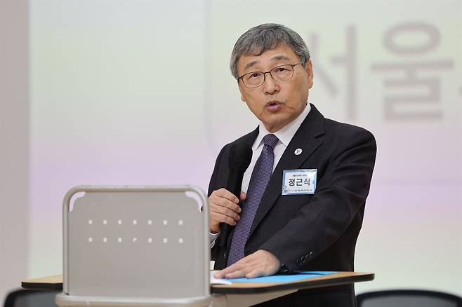 | ▲ 2025 서울 로봇 융합 인재 육성 포럼 '2025 서울 로봇 융합 인재 육성 포럼'에서 "기술 습득을 넘어 사람과 로봇이 협력하는 융합형 직업 교육"으로 나아가야 한다고 강조하는 정근식 서울시교육감. |