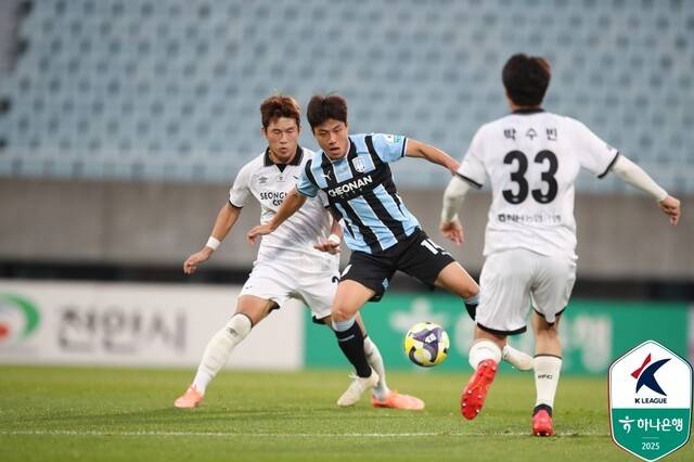 이어 천안은 후반 36분에도 툰가라와 김성준을 벤치로 불러 들이고 정석화와 이종성을 투입하며 동점을 노렸다. 천안은 교체투입된 팀 내 득점 2위(7골) 이상준이 분전했지만, 승부를 뒤집을 시간이 부족했던데다, 오히려 성남이 1골 더 추가하며 승리에 쐐기를 박았다.