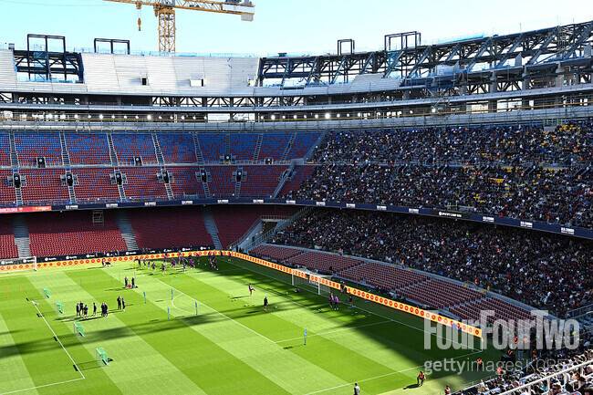 스포티파이 캄프 누 외부는 여전히 크레인과 구조물이 그대로 드러나 있었다. 그러나 안으로 들어서면 분위기가 달라진다. 좌석은 바르셀로나의 상징색인 블라우그라나(푸른색과 붉은색) 패턴으로 배열되었고, 관중석의 경사는 과거보다 완만해져 시야와 이동이 한결 편안해졌다. 그러나 내부에서 봤을 때도 3층 상부 스탠드는 아직 공사 중이라 철골 구조가 그대로 노출돼 있었고, 경기장 어디서도 보이는 크레인은 ‘미완의 경기장’이라는 인상을 줬다.