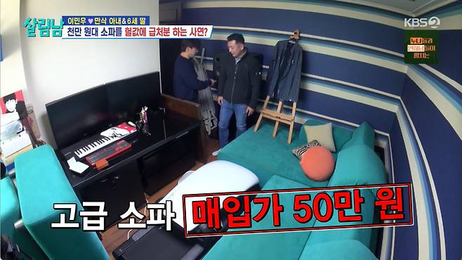 비싸게 주고 산 소파였지만 사장님은 상태를 열심히 살펴보더니 50만 원을 책정했다. 이민우는 "150도 아니고 50만 원이요?"라며 당황했다. 사장님은 "이거 안사가면 스티커 붙여서 버려야 한다"고 설득했다.