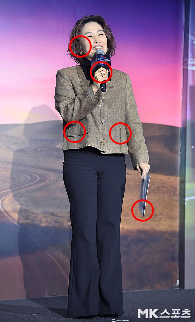 이날 제작발표회에서 박경림은 옅은 브라운 컬러의 숏재킷에 블랙 팬츠를 매치해 편한 느낌의 패션으로 제작발표회를 진행했습니다.