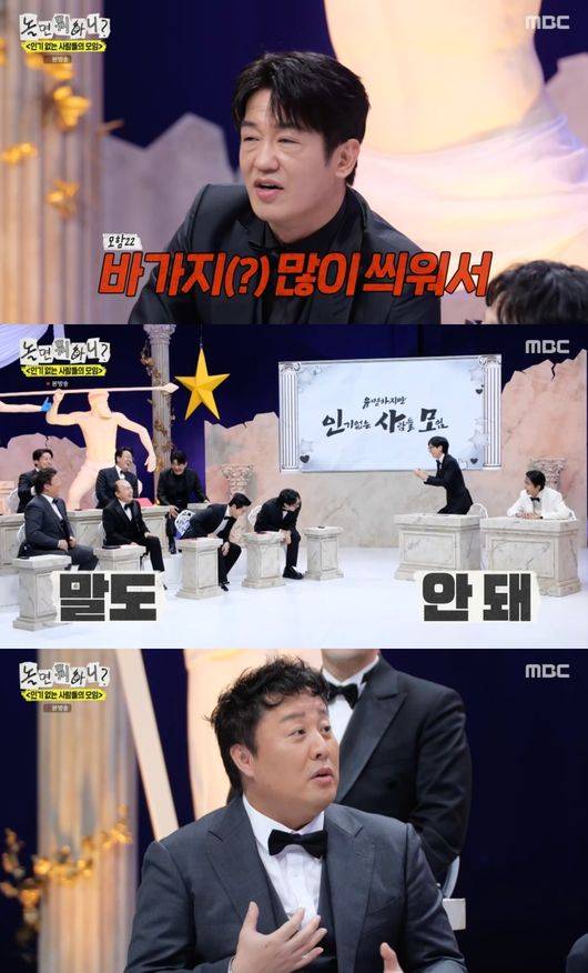지난 8일 저녁 방송된 MBC 예능 프로그램 '놀면 뭐하니?(약칭 놀뭐)'에서는 유명하지만 인기 없는 사람들의 모임 일명 '인.사.모' 총회 1회가 꾸며졌다.