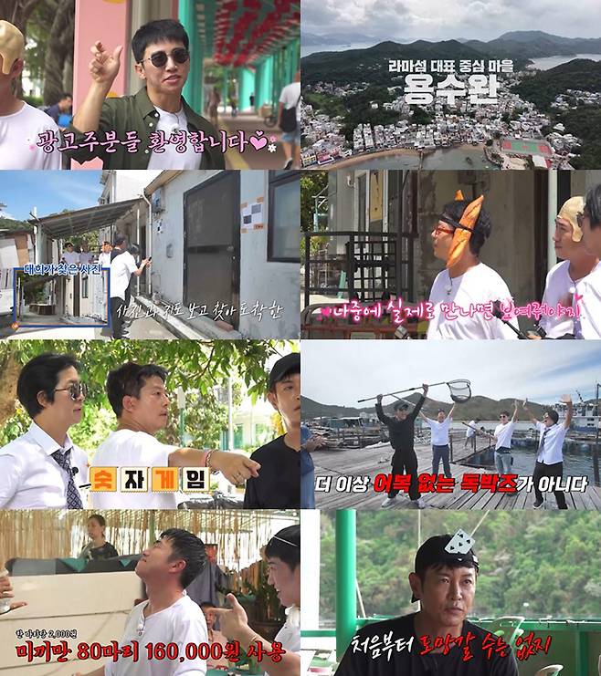 8일 방송한 채널S ‘니돈내산 독박투어4’(채널S, SK브로드밴드 공동 제작) 24회에서는 김대희x김준호x장동민x유세윤x홍인규가 주윤발의 고향인 ‘라마섬’을 마지막으로 ‘홍콩 섬 투어’를 매듭짓는 현장이 펼쳐졌다. 특히 ‘최다 독박자’가 된 홍인규는 눈물과 구토를 삼키면서 ‘통 뱀찜’과 ‘새끼쥐술’ 먹기를 완수했다.
