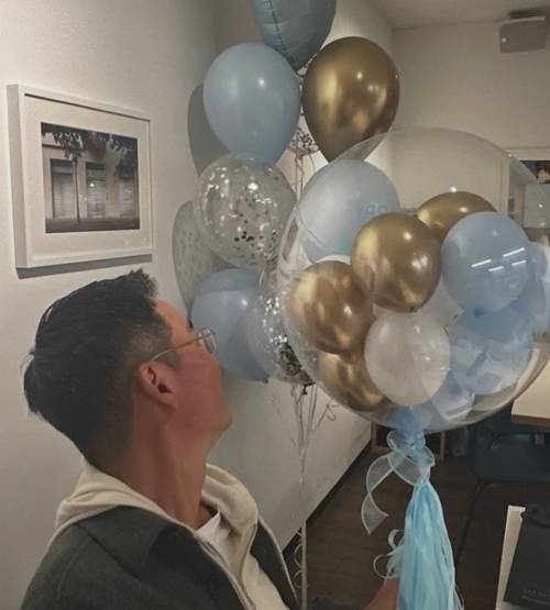사진 속에는 풍선과 와인잔으로 꾸며진 고급스러운 공간에서 남편과 다정한 시간을 보내는 모습이 담겼다.