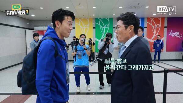 경기 전 믹스드존에서 손흥민을 발견한 차범근 전 감독은 "오늘 나를 밟고 올라간다 그래가지고"라고 말하며 웃었다.