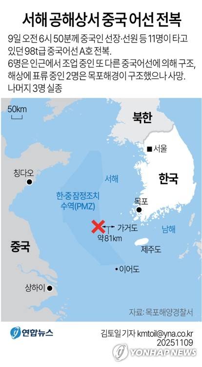[그래픽] 서해 공해상에서 중국 어선 전복 사고
