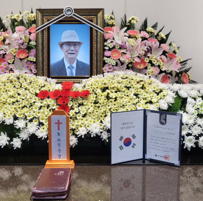 공개된 사진에는 정태우 할아버지의 빈소가 담겼다. 특히 정태우 할아버지의 영정사진 앞에는 국가보훈부 측에서 전한 추모메시지가 이목을 사로잡는다. 국가유공자인 만큼 국가보훈부에서 장례를 지원한 것.