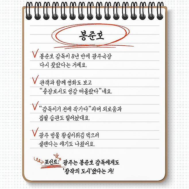 ✅ 포인트: 광주는 봉준호 감독에게도 '창작의 도시'였다는 거!