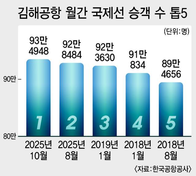 10월 김해공항 국제선 승객 93만 명 넘어 ‘사상 최대’