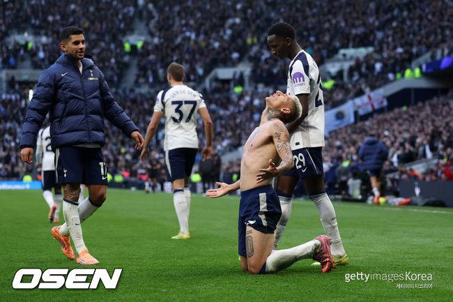 [OSEN=이인환 기자] 히샬리송이 상의를 벗고 포효한 순간, 토트넘의 악몽이 정확히 ‘5분 뒤’에 찾아왔다. 또다시 한 장의 옐로카드와 함께 스스로 화를 불러온 토트넘식 비극, ‘세리머니 직후 실점’이다.
