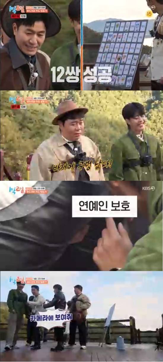 문세윤과 딘딘은 총 10쌍의 카드 뒤집기에 성공했다. 유선호는 엉덩이를 만지면서 "난 상처를 확인해봐야겠다"고 했다.