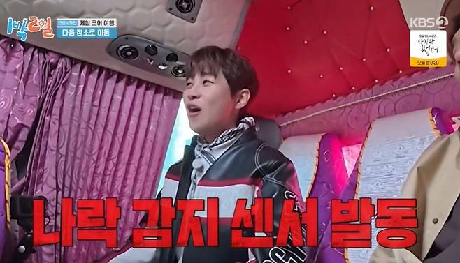 9일 방송된 KBS2 '1박 2일 시즌4'에서는 김종민, 문세윤, 딘딘, 유선호, 조세호, 이준이 제철 코어 여행을 떠났다.