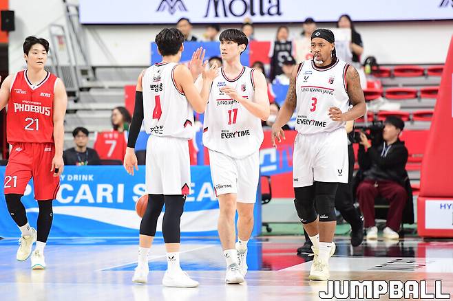 유도훈 정관장 감독은 “한승희가 족저근막염 비슷한 증상으로 심하지 않지만, 트레이너가 몇 경기 조절해야 한다고 했다”며 “김경원은 능력이 있는 선수인데 김종규의 높이를 활용한다. 본인이 기회를 못 받았는데 지속적으로 준비를 잘 하고 있다고 트레이너와 코치들에게 듣고 있었다. 충분히 능력이 있는데 기회를 못 준 부분은 미안하게 생각한다”고 했다.