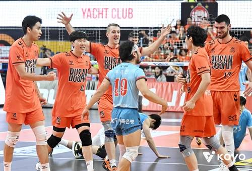 대한항공이 OK저축은행의 ‘부산 시대’ 개막전을 제압하며 리그 선두로 올라섰다.