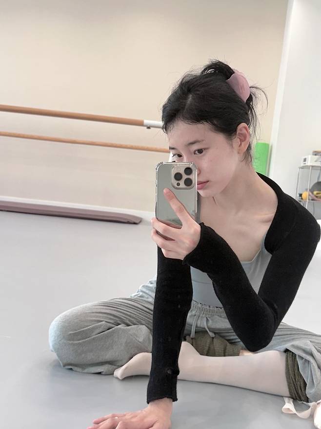 꾸준한 발레 운동으로 다져진 탄탄하고 유연한 몸매를 드러내며 또 한 번 ‘자기 관리 끝판왕’임을 입증했다. 또한, 거울 셀카를 통해 잡티 하나 없는 무결점 미모도 과시했다.