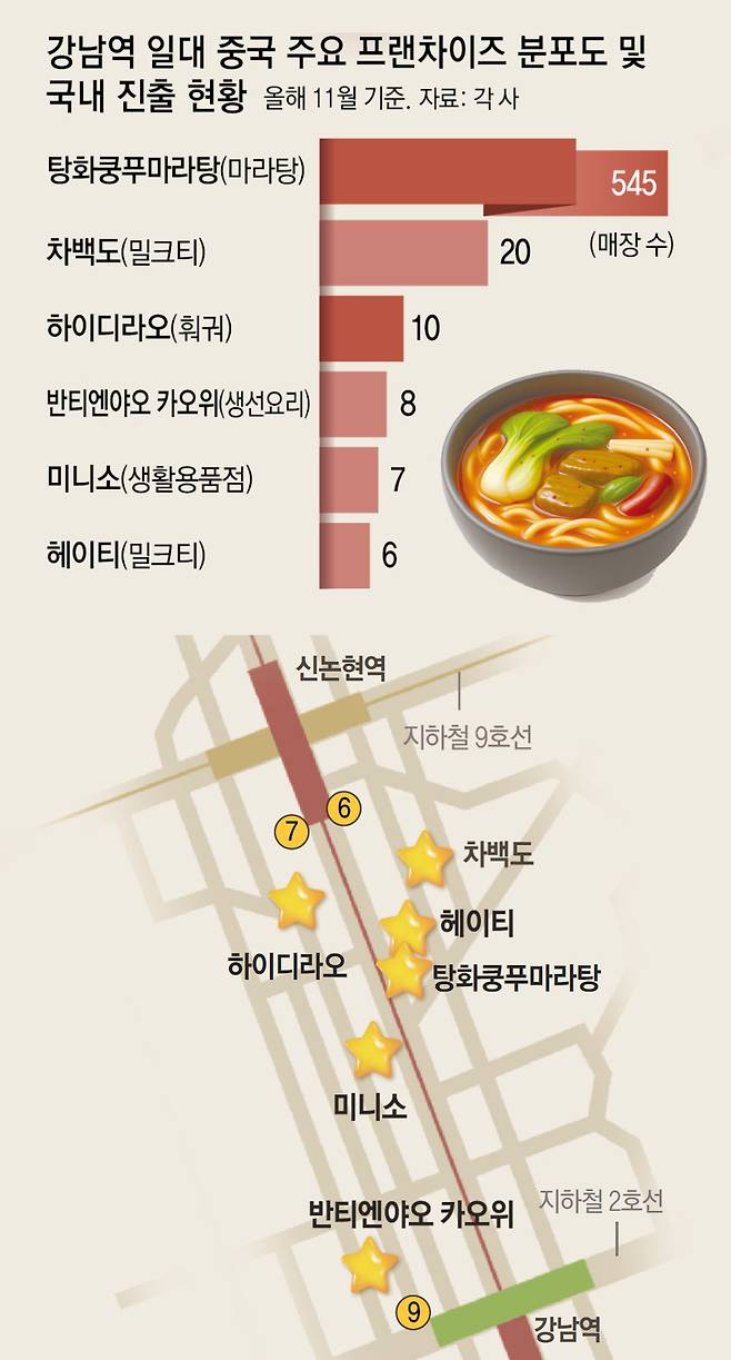 - 마라탕·훠궈·밀크티…中프랜차이즈 격전장 된 강남역