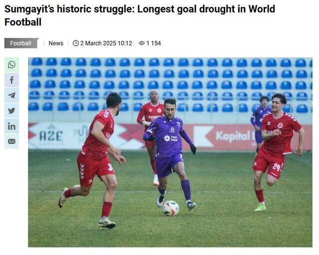 가장 최근에는 아제르바이잔 리그의 숨가이트 FK가 2024-2025시즌 열두 경기 연속 무득점을 기록했다. 아제르바이잔 매체 <이드만 비즈>는 당시 숨가이트 FK가 세계 최장 연속 무득점 기록을 세웠다고 보도한 바 있다. 그러나 이 역시 컵 대회를 포함한 공식전 기준이었다.