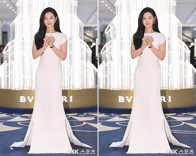 이날 김지원은 순백의 롱 드레스로 고급스러운 분위기를 자아냈습니다.