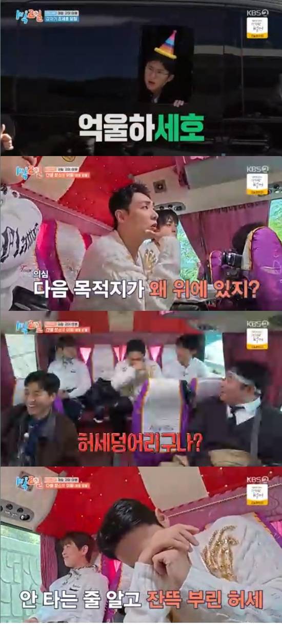 딘딘은 "경호팀이면 좋은 거 아니다"라고 말했다. 유선호는 조세호가 끌려간 뒤 "남들보다 높대. 등산 아니면 패러글라이딩이야"라고 예상했다.