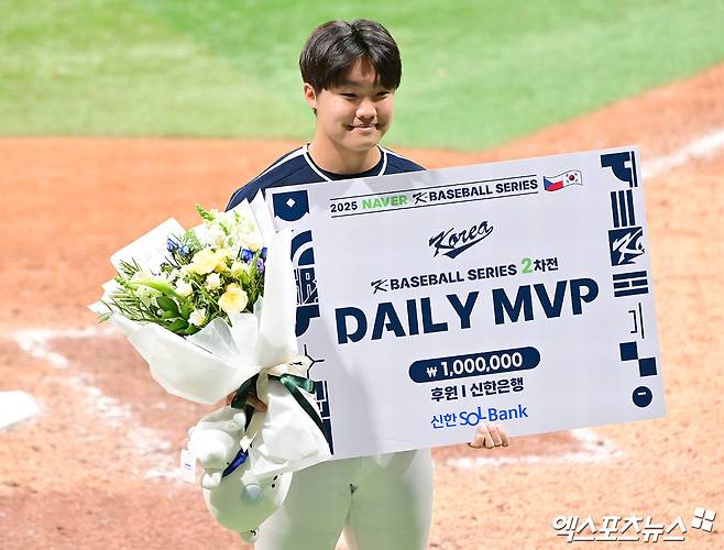 (엑스포츠뉴스 조은혜 기자) 태극마크를 단 '막내' 한화 이글스 정우주가 씩씩하게 공을 꽂는 모습에 '원조' 돌직구도 극찬을 아끼지 않았다.
