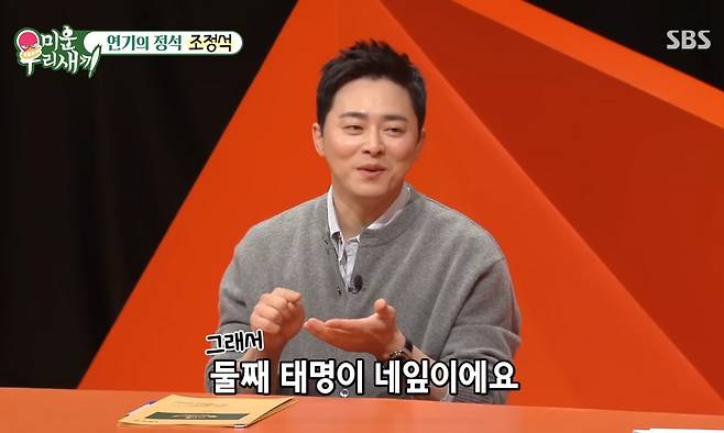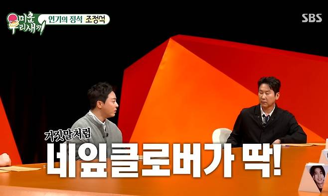 지난 9일 방송된 SBS 예능 프로그램 '미운 우리 새끼'에서는 조정석이 스페셜 MC로 출연해 근황과 가족 이야기를 전했다.