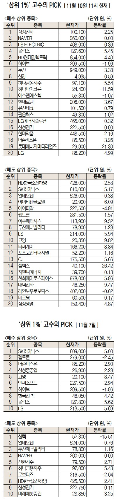 이날 미래에셋증권에 따르면 미래에셋증권 주식 거래 고객 중 최근 1개월간 투자 수익률 상위 1%에 해당하는 ‘주식 초고수’들이 오전 11시까지 가장 많이 사들인 종목은 삼성전자다.