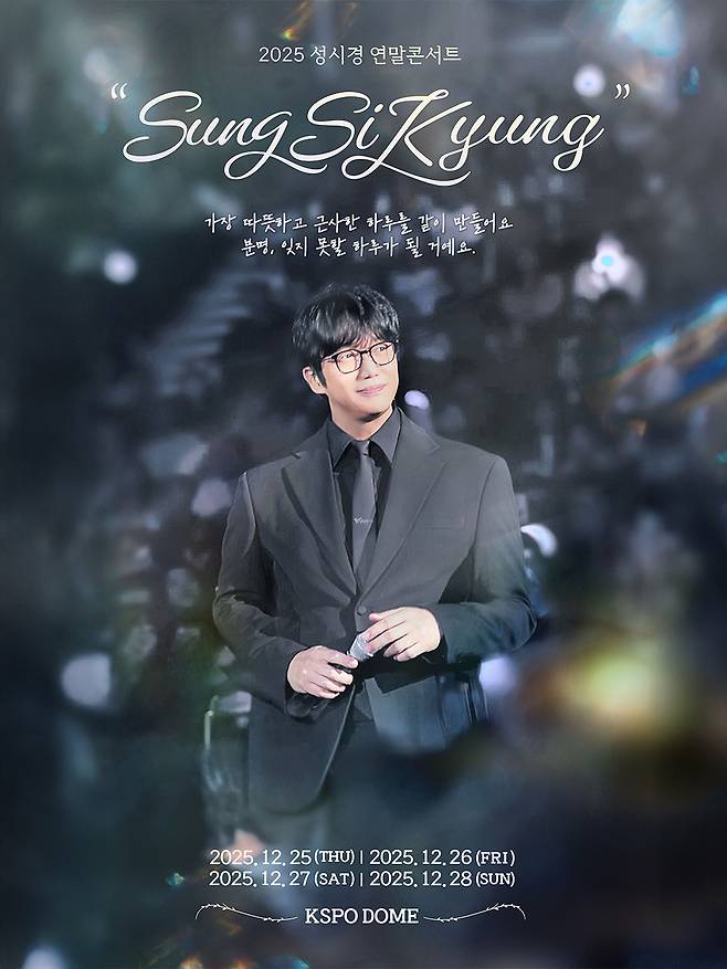 성시경은 다음 달 25~28일 서울 송파구 올림픽공원 케이스포 돔(구 올림픽 체조경기장)에서 '2025 성시경 연말 콘서트-성시경'을 개최한다.