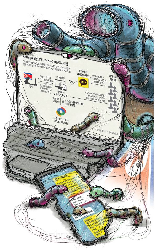 이는 기존에 악성코드에 감염돼 해커의 명령에 따라 원격으로 제어되는 일종의 ‘좀비PC’보다 훨씬 고도화된 수법이다. 구글 ‘내 기기 허브’(파인드 허브) 기능을 통해 스마트폰을 원격 조종하는 ‘파괴적 수법’ 공격이 처음으로 확인됐다. 북한 배후 해커들이 인공지능(AI)을 활용해 한층 더 정교한 수법을 쓰면서 국민의 일상이 파괴될 수 있다는 경고가 나온다.