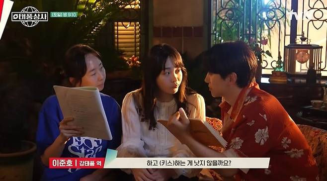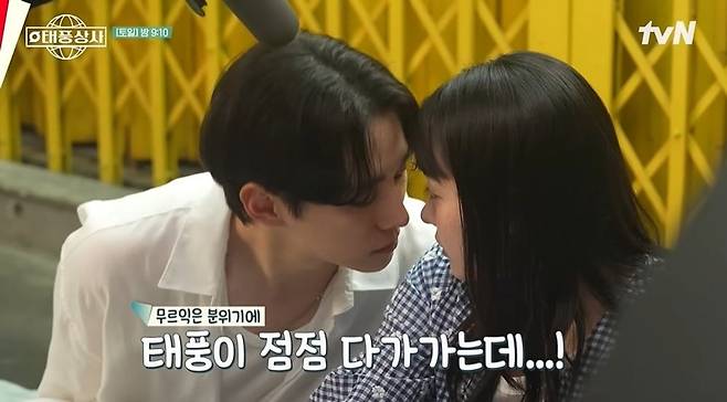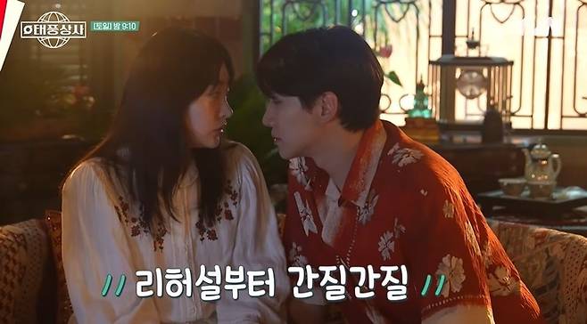 다음은 키스 불발신 촬영. 강태풍이 키스하려 다가가자 부끄러운 마음에 힘차게 밀어내는 오미선. 이를 촬영하며 이준호와 김민하는 "갑자기 테토녀가 됐다"라며 웃었다.