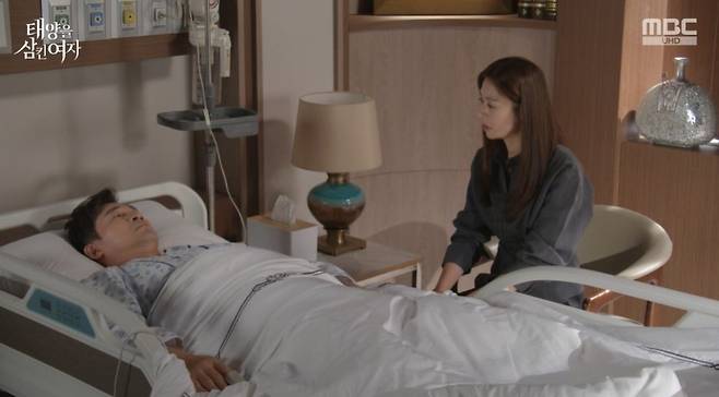 10일 방송된 MBC 일일드라마 '태양을 삼킨 여자'에는 백설희/정루시아(장신영 분)가 민두식(전노민)을 지키는 모습이 그려졌다.