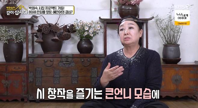 앞서 박원숙은 특별한 감성으로 나태주 시인으로부터 시집 발간을 제안 받았던 터. 황석정은 "내가 나 시인과 전화를 하며 진지하게 '큰언니 시집 프로젝트'를 가동하자고 했다. 나 시인도 적극적으로 독려해줘서 의기투합하게 됐다"라며 "좋은 결과가 있을 것이고 언니들과 더 돈독하고 의미 있는 시간이 될 거라 생각한다"라고 말했다.