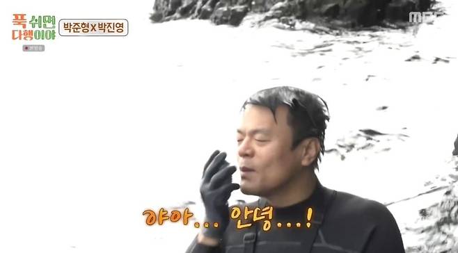 박진영은 생애 처음 전복을 딴 기쁨에 입까지 맞추었지만, 전복 금어기란 소리에 크게 실망했다. 다행히 뒤이어 해삼, 문어 등을 잡으며 기분이 좋아진 박진영. 문어가 탈출하려고 하자 박준형은 "역시 모든 것들이 JYP한테서 탈출하려고 해"라며 녹음실의 설움을 토로하기도. 하루 종일 할 수 있다고 말했던 박진영은 힘들어하며 다리가 풀렸고, 이를 본 박준형은 신이 났다.