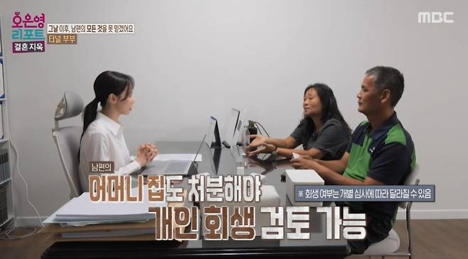 부부의 집과 어머니 집도 처분해야 개인 회생 검토가 가능하다고. 아내는 결국 "1,800만 원 때 얘기했으면 일이 이렇게 안 됐다. 화를 안 낼 수 없다"라고 분노했다. 남편은 아내에게 바로 말 안 한 이유에 관해 "알면 난리 날 것 같아서. 차라리 그때 얘기했으면 일이 이렇게까지 커지진 않았겠죠"라고 후회했다.