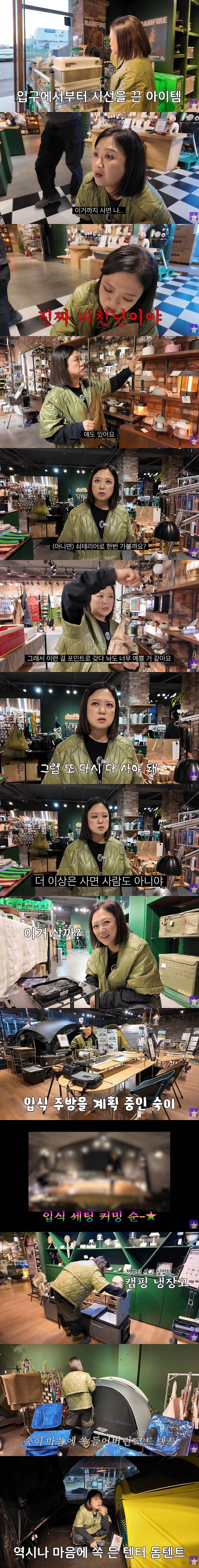 영상 속 김숙은 겨울 장박 맞이 신상 캠핑템 탐방에 나섰다. 김숙은 "여기 물건이 많아졌다"면서 입구에서부터 신상템에 눈을 떼지 못해 웃음을 안겼다.
